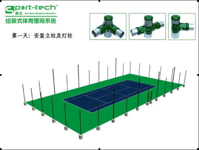 440平方米的球場圍網只用5天即可完成,而且沒有煩人的噪音、嗆人的粉塵,更沒有熏人的異味,工人只需把預制好的各個部位扣件用鑼絲擰緊即可,操作就像搭積木一樣方便快捷。……