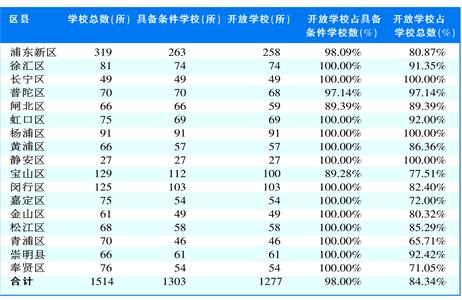 昨天,上海市體育局發布了2014年度學校體育場地向社區開放的統計數據。數字表明,2014年全市學校體育場地向社區開放的中小學校共1277所,占學校總數的84.34%.所有硬件具備且符合開……