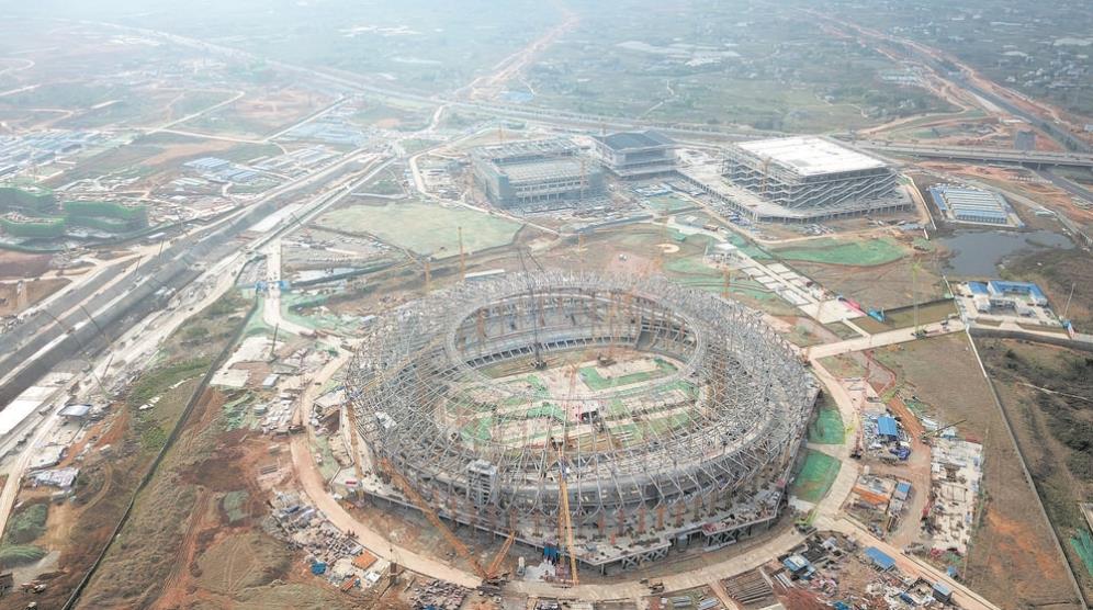 大運會東安湖體育公園主場館體育場:提前三天 “飛碟”封頂