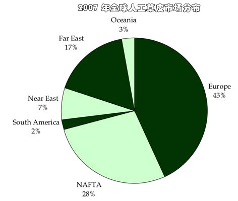 人工草皮全球市場分布 人造草皮是使用聚丙烯或聚乙烯以及兩者聚合物混合組成的纖維,它的纖維構造模仿了自然草的植株形態及顏色,卻有著不受天氣因素制約的特性。像被意大利國家隊……