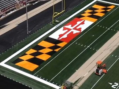 美國馬里蘭大學伯德體育場的人造草皮將不光擁有一個學校旗幟圖案的外觀,還將是美國溫……