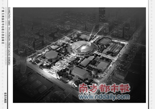 天河體育中心夜景鳥瞰效果圖。