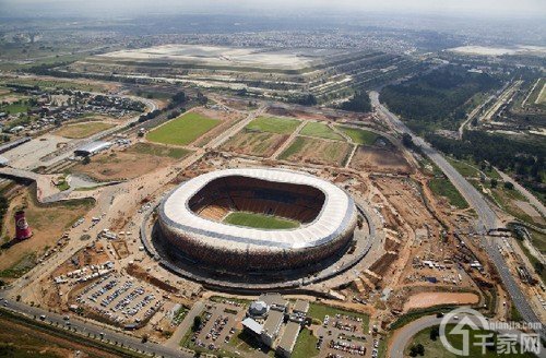 除了新建的五座體育場,足球城體育場是南非最年輕的體育場之一,只有德班的皇家班佛肯比他更年輕(1999年竣工)。為了打造這座非洲的超級球場,南非政府花費了33億蘭特,約合4.4億美元,這樣的大手筆甚至能和安聯球場媲美,后者工程耗資3.4億歐元(按照目前的匯率約合4.7億美元),世界杯決賽將在這里舉行。為了更好地迎接世界杯,足球城體育場從2006年9月開始了重大升級,由8萬人擴容中94700人。升級主要是圍繞著上層進行的,除了增加99間行政套房外,增加新的更衣室設施,還加蓋了一層環繞屋頂,以及安裝上新的照明設備,這也使該體育場更具現代感,成為了非洲大陸名副其實的“旗艦”體育場。