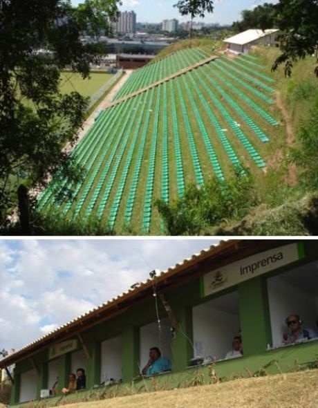 間圭托·馬陸賽利(JanguitoMalucelli)球場是巴西的第一座生態友好型體育場。在這里,觀眾并不是坐在金屬材料打造的看臺上,而是坐在山坡的一排排座椅上。體育場使用的所有木料都是通過回收得來,目的就是避免森林砍伐。此外,整座體育場在建造中沒有使用一滴混凝土。