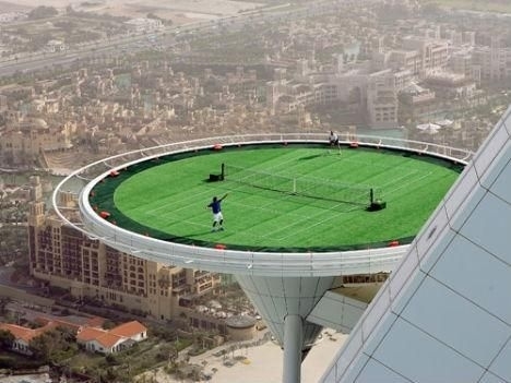 在互聯網上出現高空網球比賽的照片后,很多人認為一定有人在搞惡作劇。照片呈現的景象太過怪異,不可能真實存在,此外,這種比賽也非常不安全。然而,遭到很多人質疑的照片所呈現的網球比賽就是真實的。照片在迪拜帆船酒店拍攝,直升機停機坪被改建成一個網球場,比賽雙方是羅杰·費德勒和安德烈·阿加西,他們正積極準備2005年的迪拜錦標賽。