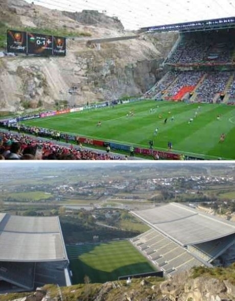 葡萄牙的布拉加體育場擁有一種特殊的美,它建在一個花崗巖采石場,可俯視布拉加城。體育場的一端是富有戲劇性的采石場巖壁,另一端則是下方布拉加城的景色。布拉加體育場是世界上最昂貴的體育場,建造費用高達8310萬歐元(約合1.14億美元),主要都用在運送開鑿出的石頭上。