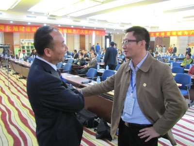 會前企業代表正在交談 休會期間企業代表熱情交談 休會期間企業代表與論壇主辦方合影 總局領導與到會企業代表合影