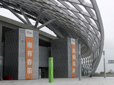 深圳灣體育中心由于承擔著大運會開幕式的重任,備受矚目。這一體育中心,巧妙的將體育場、體育館和游泳館結合起來,三位一體, 38公里長的鋼絲彎曲纏繞,好似一只欲破蛹而出蝶變的蠶繭,在業界享有“南有春繭、北有鳥巢”的美譽。