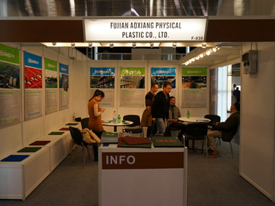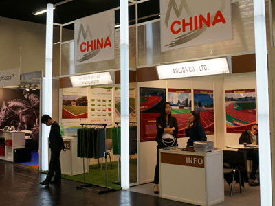 據前往現場的場館資源網記者統計,今年有近五十家中國企業前來參展,其中不乏山東泰山集團等國內外知名的大型體育材料生產企業。